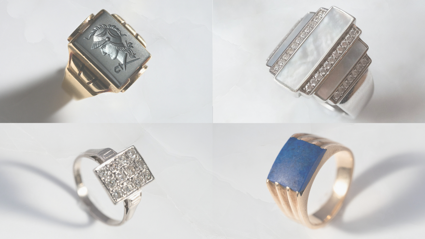10K 1936年製 タイガーアイ & 2カラーゴールド・メンズ リング