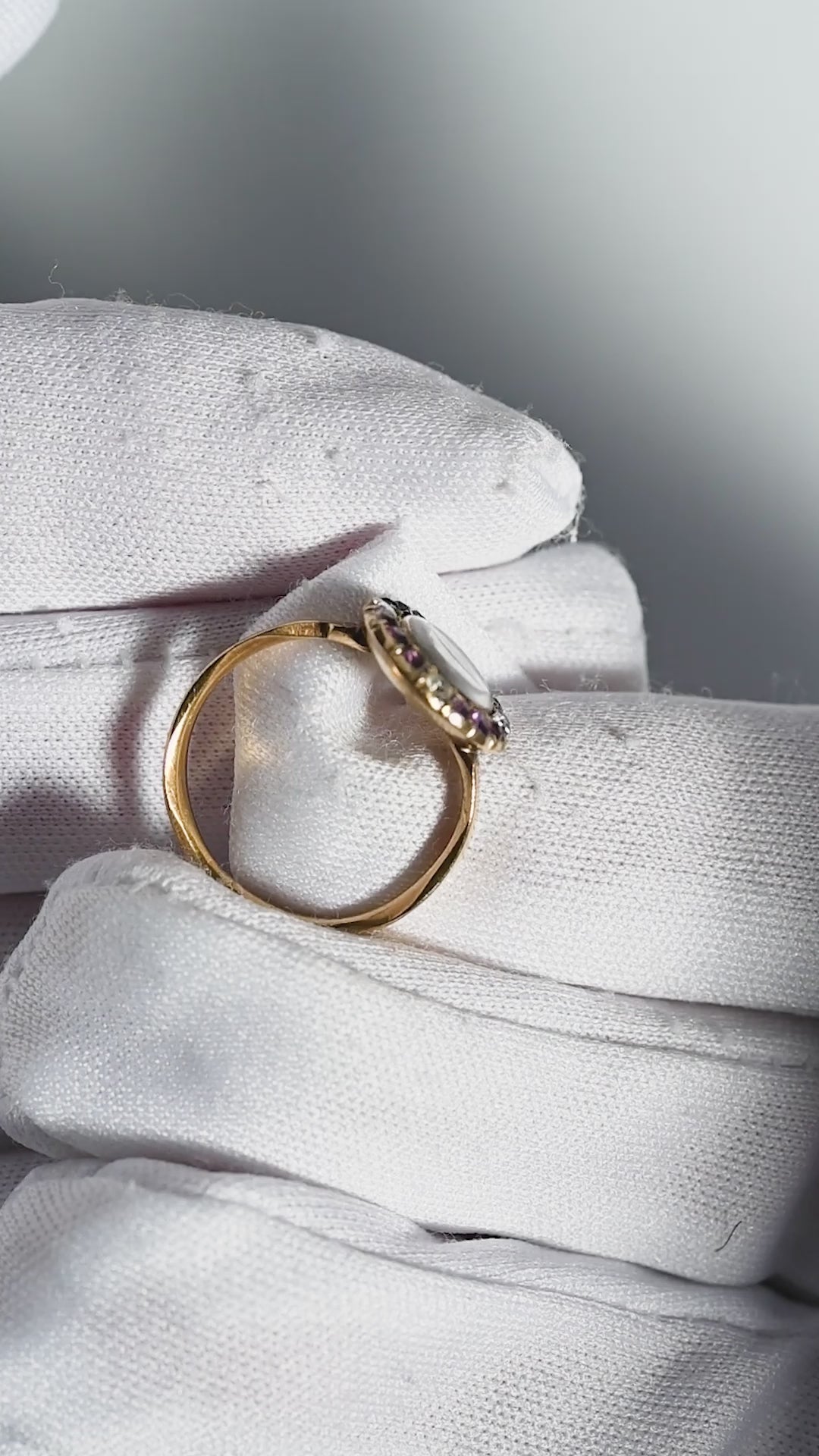 18世紀 ジョージアン 18金 3.4g アメジスト & ダイヤモンド モーニングリング